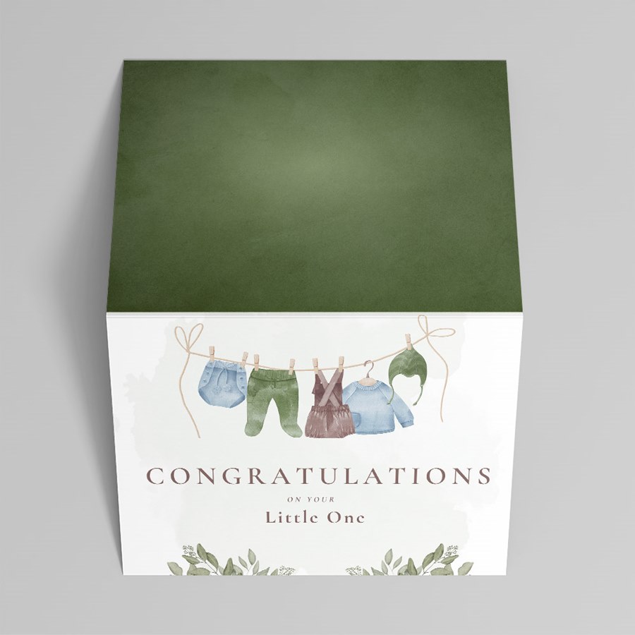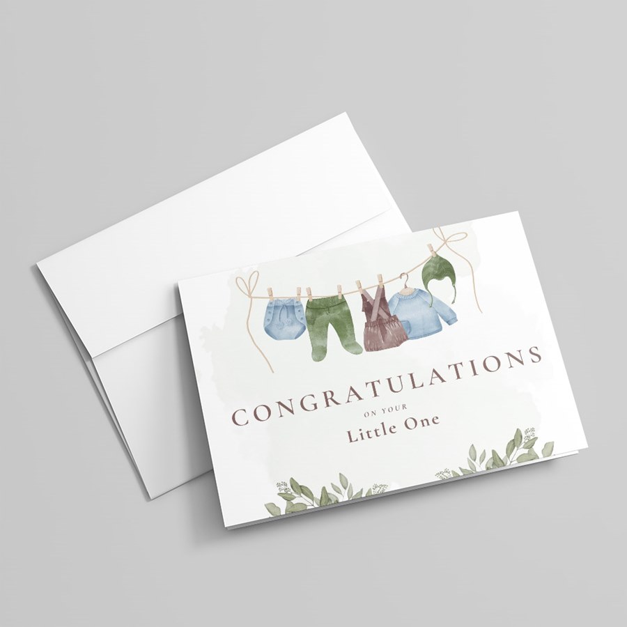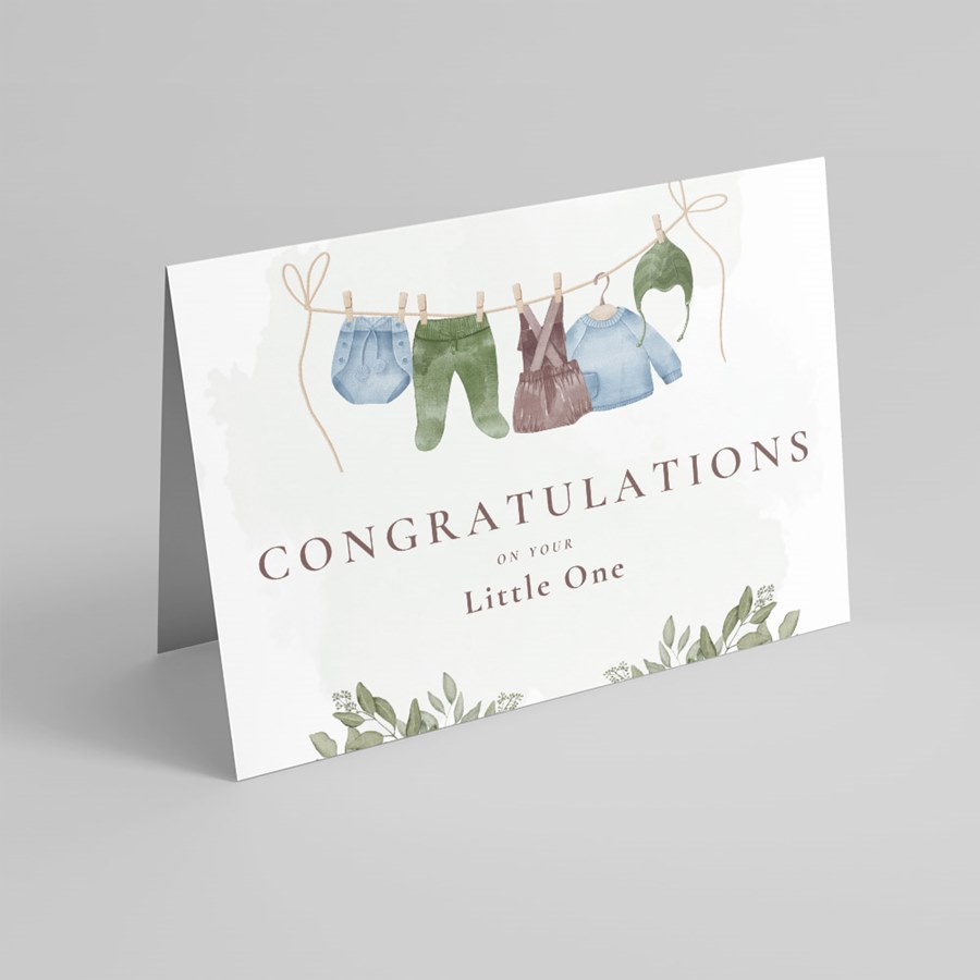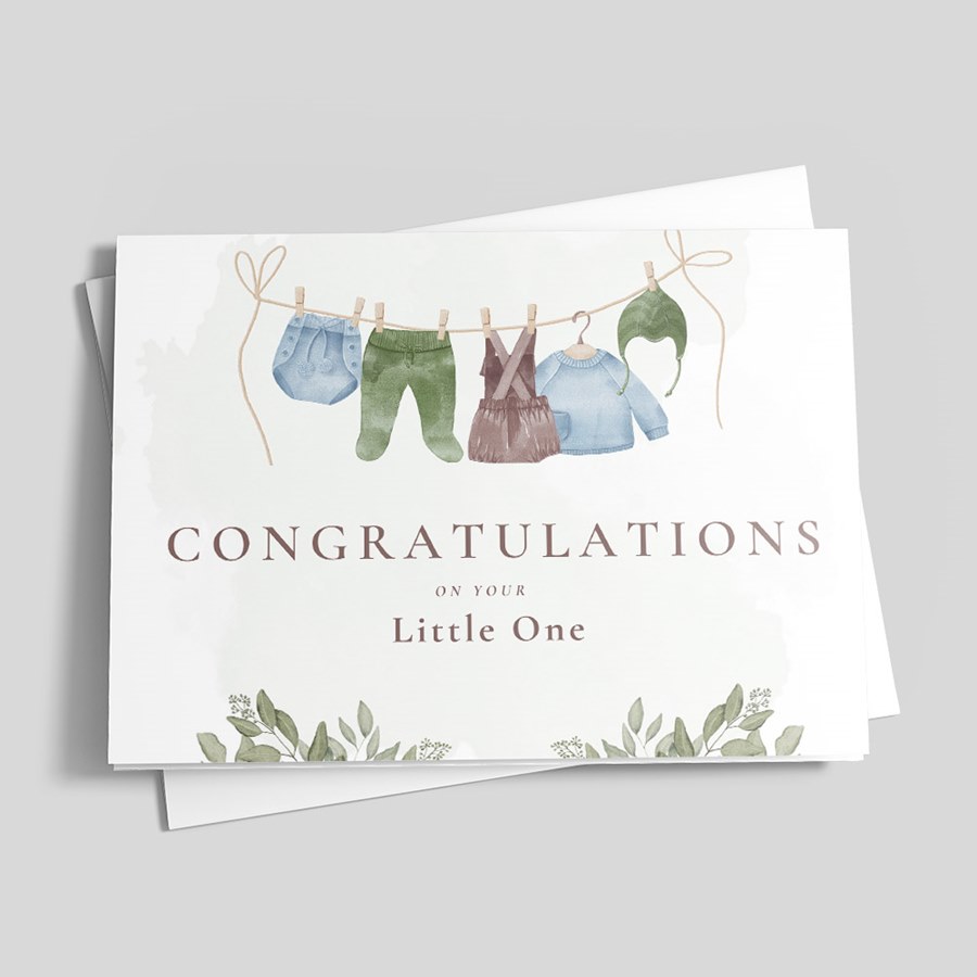 - Heartfelt headline: Features the printed message CONGRATULATIONS ON YOUR LITTLE ONE in a decorative, easy-to-read font.