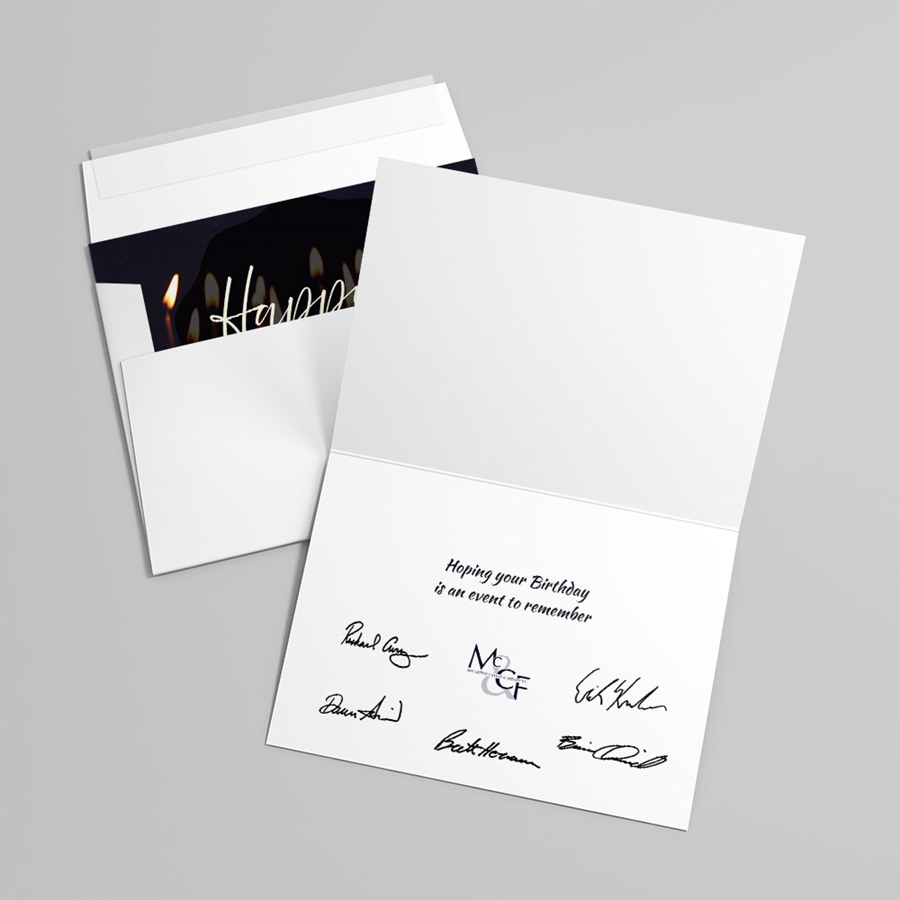 - Thoughtful interior: The card opens to a printed birthday message with signatures beneath it—ready for team sign-offs or handwritten notes.